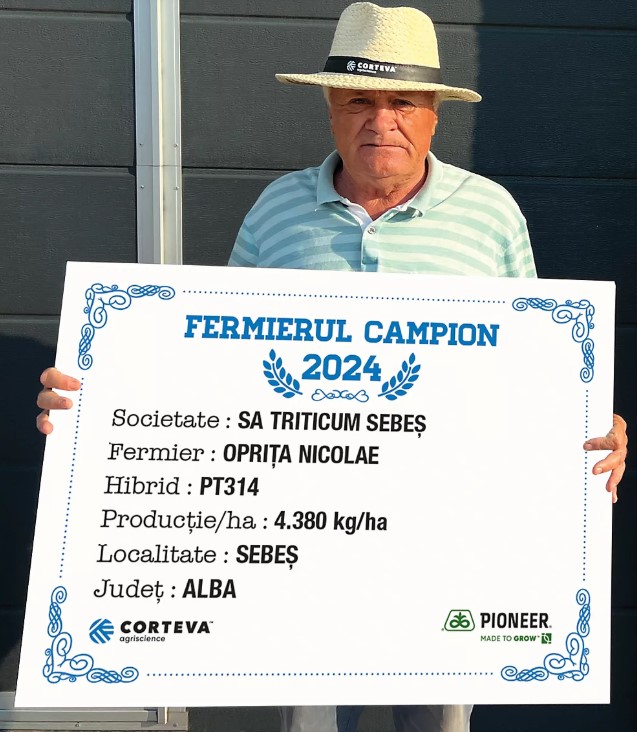 În județul Alba, la Sebeș, Nicolae Oprița a obținut rezultate remarcabile în 2024, semănând hibridul PT314 pe o suprafață de 25 ha. El spune că cea mai bună parcelă din fermă și cel mai mare randament, de 4.380 kg/ha, au fost obținute cu hibridul Pioneer. „Am avut grâu ca cultură premergătoare, am făcut o lucrare superficială a solului, astfel că terenul a fost pregătit cu discul și combinatorul, apoi am fertilizat cu îngrășământ complex 18.46.0, în doză de 200 kg/ha. Semănatul a avut loc la început de septembrie, iar în toamnă am aplicat un singur fungicid.