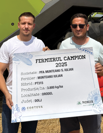 Hibridul PT315 este cel care a performat în fermele domnilor Cristian Dinuț și Iulian Munteanu și a oferit o producție de 3.800 kg/ha.